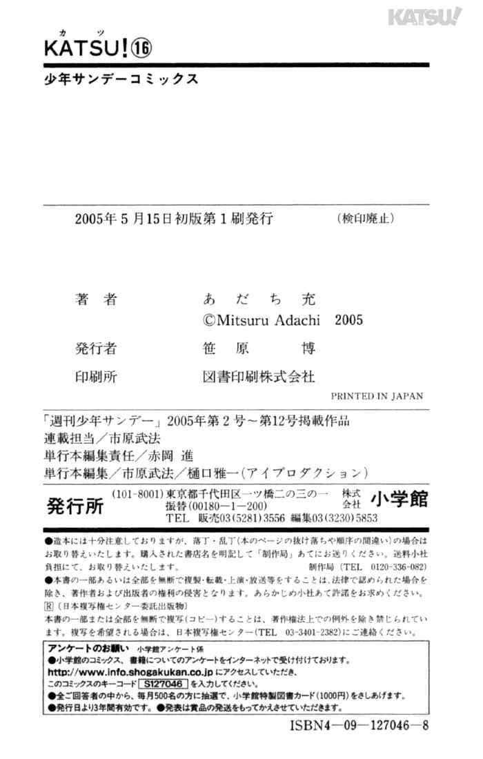 Katsu - Boxing Manga - Vol 16 - END